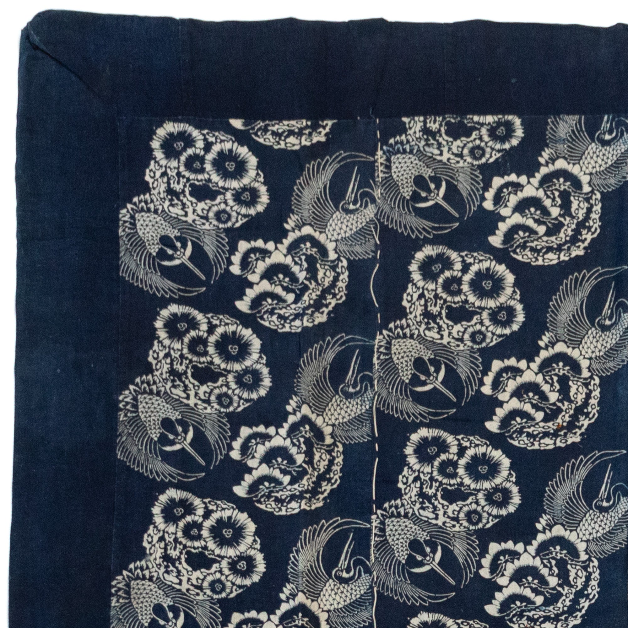 Katazome 型染め (stencil resist dyed fabric) Futonji futon cover with an indigo dye & flower pattern.