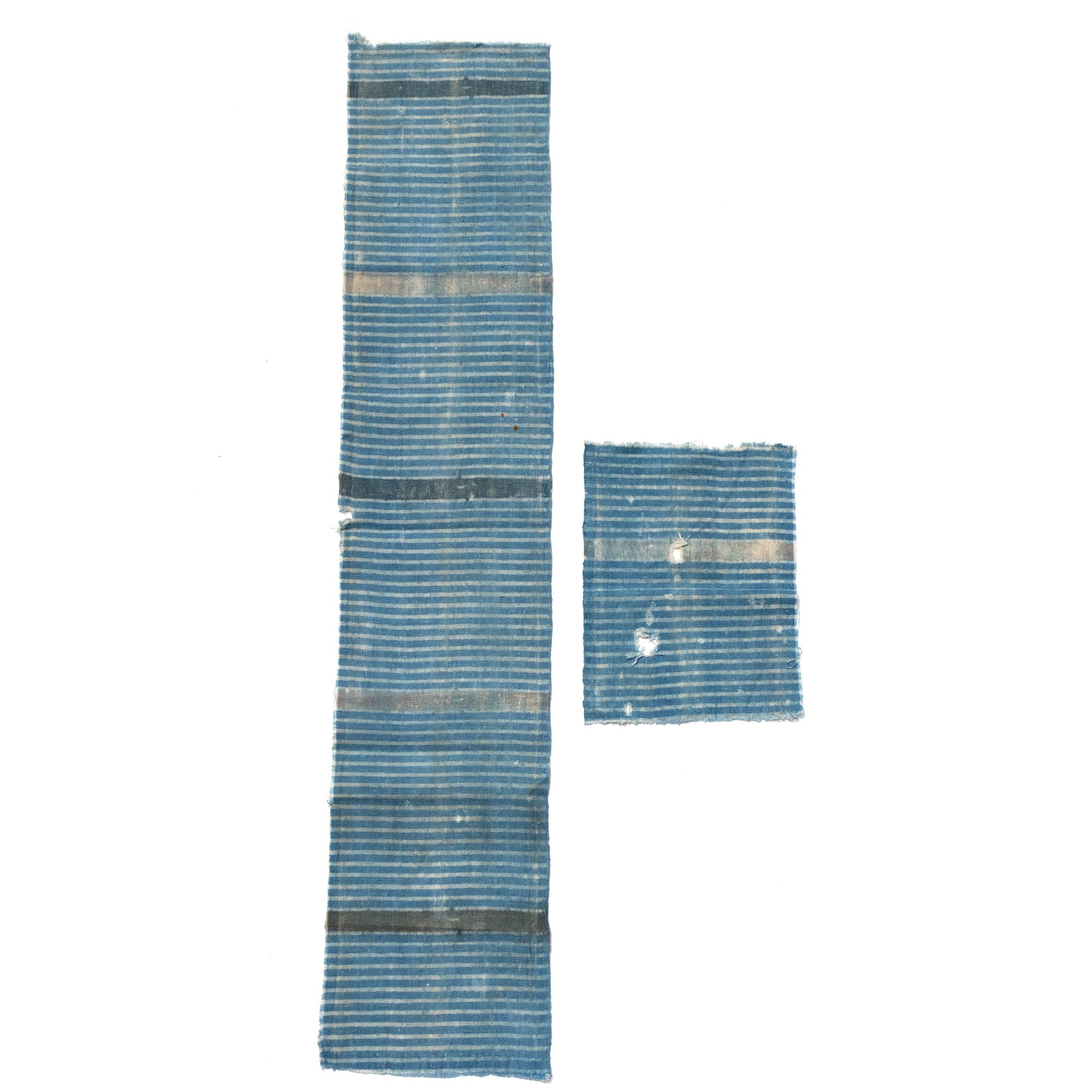 A single panel blue striped katazome textile sheet. Katazome 型染め (stencil resist indigo dyed technique).