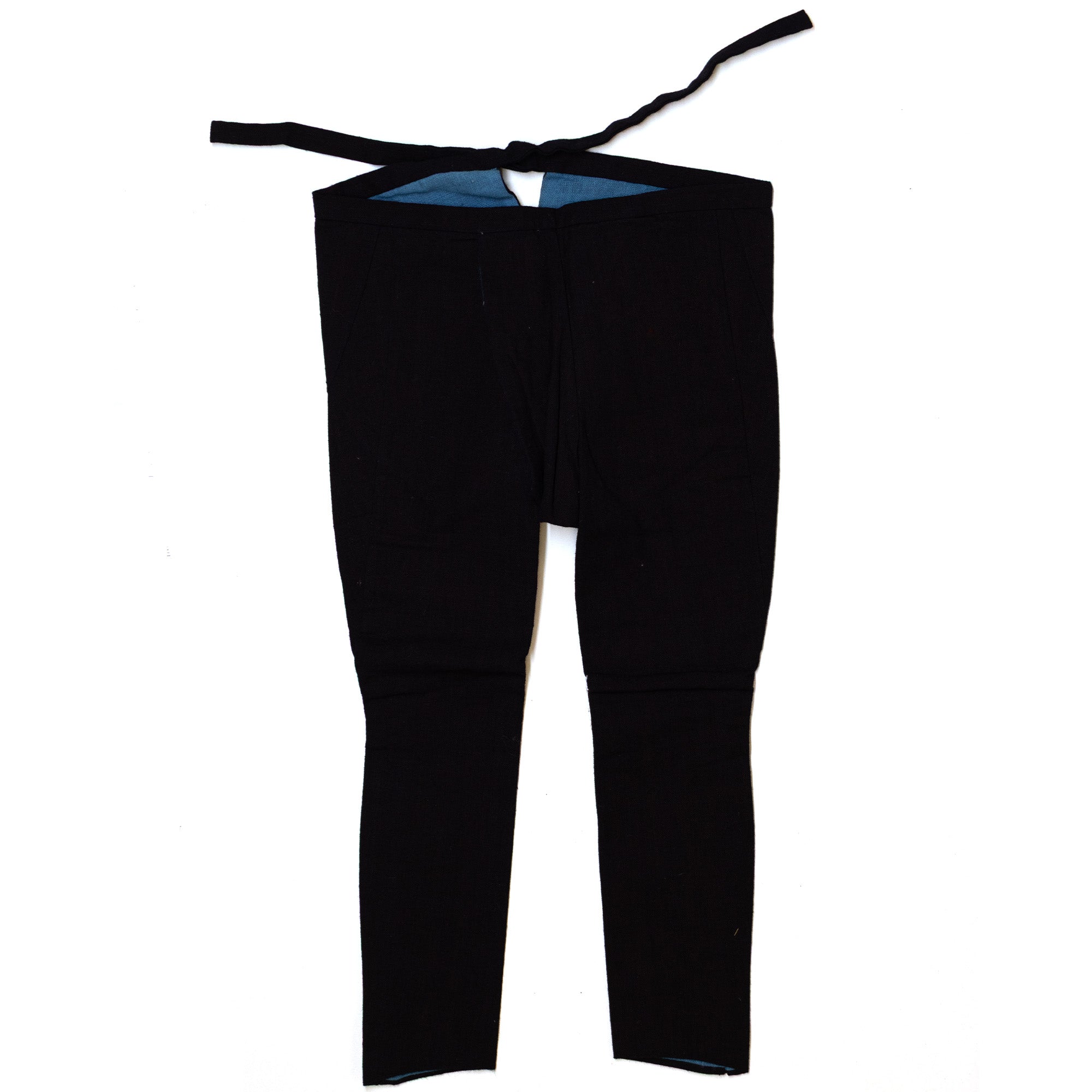 Japanese sewing sample maquette of a pair of pants. Japanese Sewing samples are made so children and other sewing beginners can practice cutting and sewing the intricacies of Japanese textiles without wasting large amounts of fabric.