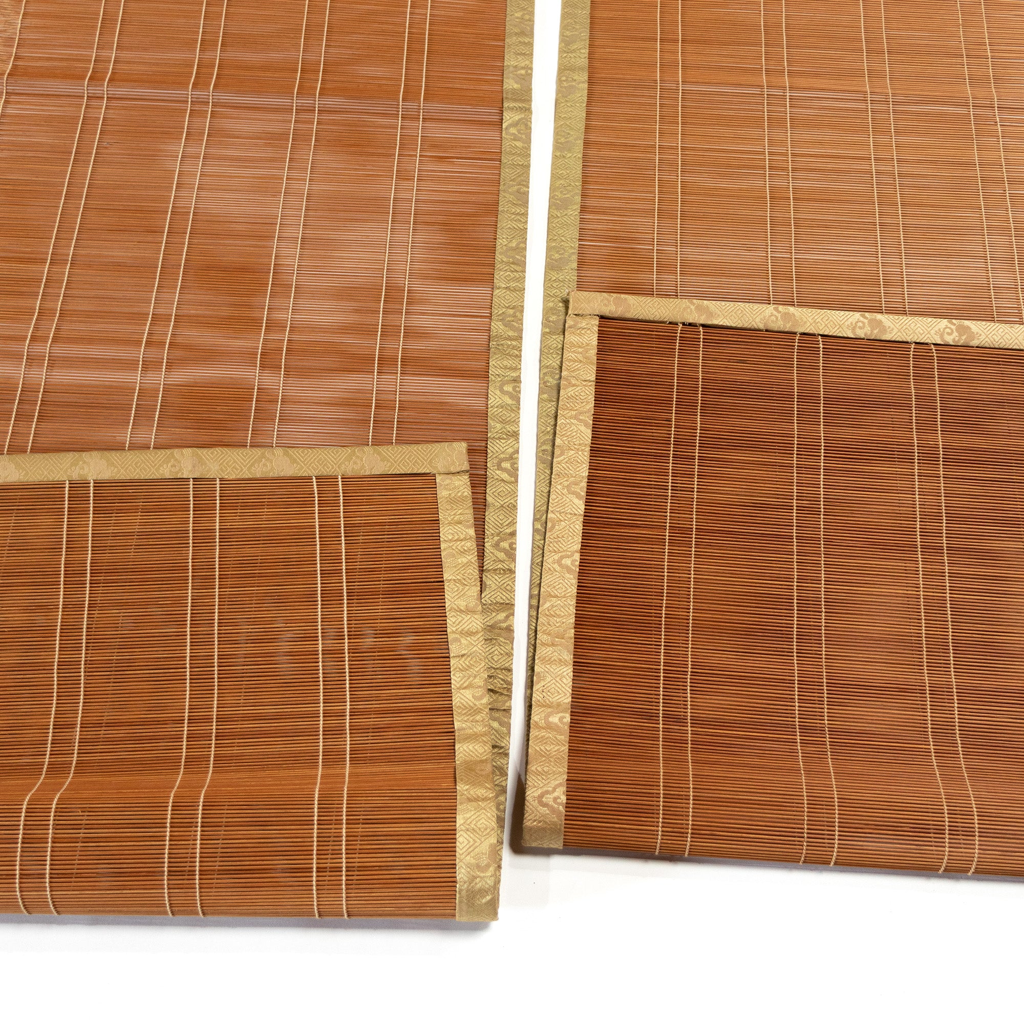 Split Bamboo blind with a patterned gold silk brocade cloth border.