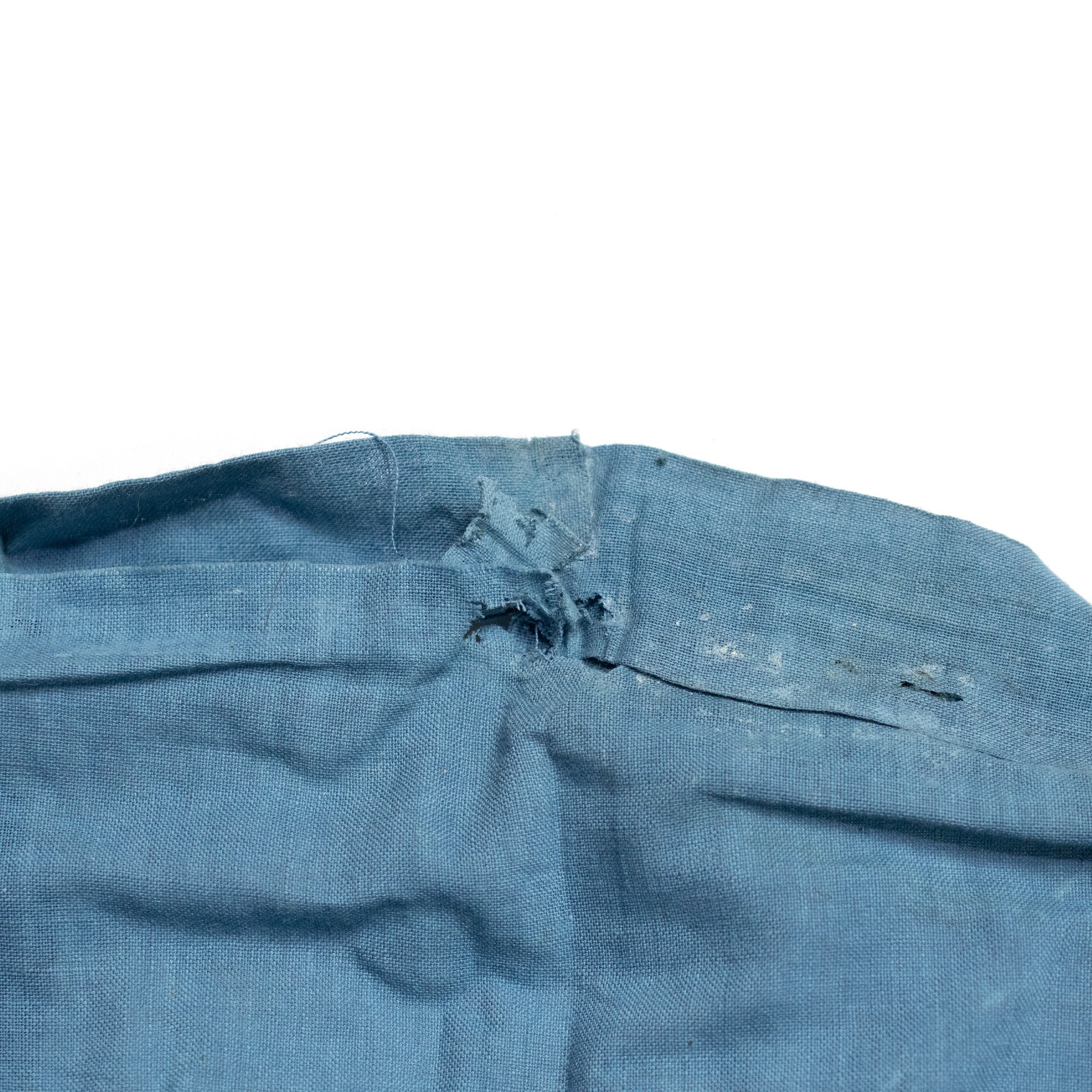 Hand sewn costume jacket for comic version of theater often shown along side Noh 能 called Kyogen 狂言. The suou 素袍 was worn by characters in the lower samurai class. Done with a tsutsugaki 筒描 (resist dyed fabric), there are five family crests with crossed arrows in an octagon across the top.