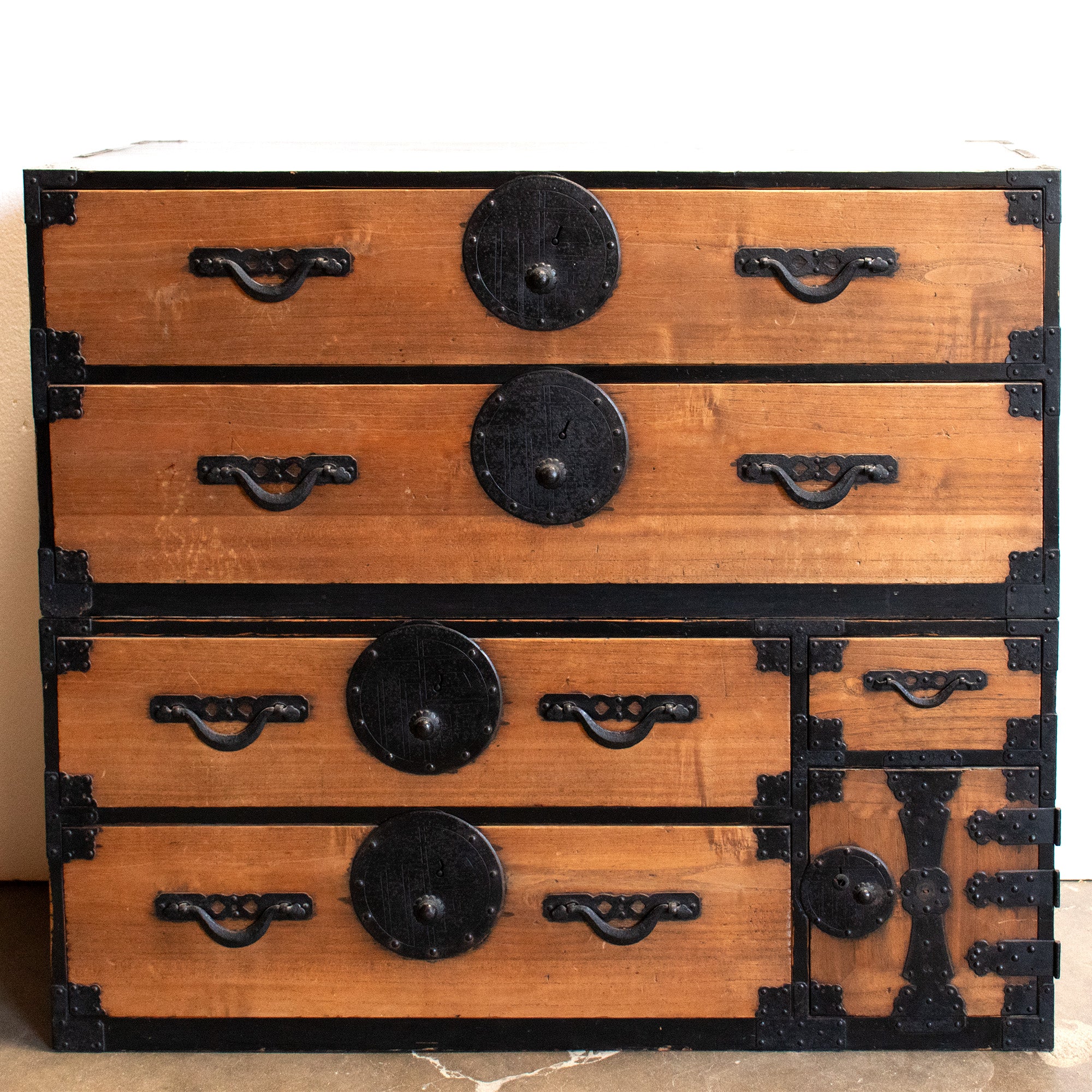 Isho dansu (clothing chest) made from Kiri wood with iron hardware and beautiful joinery from the Yamagata Region of Japan.